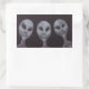 ¡Un dibujo a lápiz de color de tres ETs grises alienígenas contra un cielo negro estrellado adorna a estos pegatinas!
