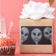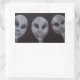 ¡Un dibujo a lápiz de color de tres ETs grises alienígenas contra un cielo negro estrellado adorna este pegatina!