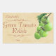 Una etiqueta de estilo vintage para ketchup, sauce o rizos con un ilustracion de un montón de tomates verdes de vid con hojas, hechos de una pintura digital original, con rollos y texto de color marrón. La fecha se puede dejar para escribir la fecha o cambiar el texto punteado al año que necesite.
