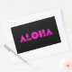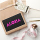 Aloha con una flor rosa brillante frente a un fondo que se puede cambiar. Puedes añadir una foto de tus vacaciones en Hawái si quieres.