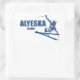 El complejo de esquí Alyeska está situado en la hermosa Girdwood Alaska, cerca de Anchorage. Este gran diseño tiene un esquiador abrazando un salto con texto en negrita.