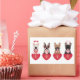 Ilustracion de tres cachorros de Bulldog franceses de diferentes colores que salen de corazones vestidos con atuendo El día de San Valentín.