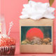 Elegante, colorido paisaje marino con sol rojo, olas de mar en vivos colores negros, marrones y blancos re-elaborados de una antigua miniatura japonesa. Amaterasu es parte del ciclo del mito japonés y también una deidad importante de la religión Shinto. Ella es la diosa del sol, pero también del universo. El nombre Amaterasu deriva de Amateru que significa "brillar en el cielo". El significado de su nombre completo, Amaterasu-ōmikami, es "el gran kami de agosto (dios) que brilla en el cielo". Para Amaterasu también se le atribuye la invención del cultivo del arroz y el trigo, el uso de gusanos de seda y el tejido con el telar.