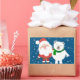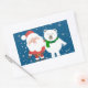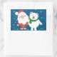 Esta pegatina navideña presenta una bella imagen de Santa y un brazo de oso polar en el brazo, sonriendo, mientras los copos de nieve caen sobre un fondo azul. Ideal para aquellos envíos especiales de vacaciones, elaboración, decoración y más!
