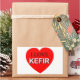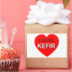 Amo a kefir. Kefir es una bebida probiótica natural elaborada con leche. Imagen de corazón rojo con texto.