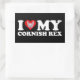 Pegatina Rectangular Amo (Corazón) a mi Cornish Rex