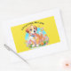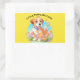 Un pegatina con una foto de un cachorro adorable sentado entre las flores. Se ve muy feliz de estar rodeado de flores y mariposas. El regalo perfecto para dar a los que aman los perros perritos. Contiene contenido generativo.