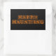 "Happy Haunting" texto ornamental en vibrantes letras naranjas, un diseño humorístico y sofisticado para una Halloween inquietante