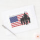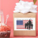 Diseño de apoyo militar con banderas estadounidenses y siluetas de soldados.