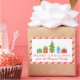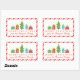 Divertida Feliz Navidad de los pegatinas para agregar a los regalos envueltos que le das a tus amigos y parientes de tu familia con un ilustracion divertido de regalos y un árbol de Navidad en un estilo retro caprichoso inspirado en el minimalista y maravilloso estilo personalizado de los años 50. Feliz Navidad con un moderno tipo de letra roja y tu nombre familiar en un audaz guión rojo y un borde de rayas de menta.