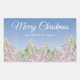 Árboles acuarelas rosadas Artistas Forestales Pegatinas navideños. Árboles acuáticos de color rosa y verde festivo en un bosque con nieve y un deseo de Feliz Navidad en escritura de moda. Personalizar el texto.
