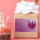 Un diseño moderno con magníficos árboles navideños en tonos violeta sobre un fondo morado a la sombra. Los copos de nieve lo acentúan.