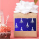 Pegatina Rectangular Árboles de Navidad plateado en azul cobalto
