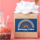 El pueblo del lago Saranac es un popular destino de Adirondack para más que hermosos lagos y montañas. Ya sea que se trate de pesca, paseos en bote, natación, ciclismo o escalada en el lago Saranac, lo tiene todo. Este diseño retro muestra una canoa con colores arcoiris.