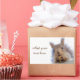 Vista frontal cerrada de un calamar con una nuez en las patas delanteras, mirando directamente a ti. Un animal curioso y gracioso. La ardilla simboliza la practicidad, la necesidad de hacer provisiones planetarias. Pegatina rectangular. Puede cambiar o eliminar la imagen y el texto de la plantilla.