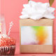 Arte abstracto moderno plantilla en blanco pegatina rectangular colorida rosa rojo amarillo azul verde.