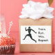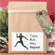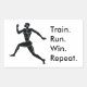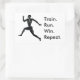 Un conjunto de pegatinas rectangulares con un gráfico de un atleta griego en funcionamiento con las palabras "Tren". Corre. Ganar. Repito". Definitivamente la fórmula universal para ganar a cualquier deportista.