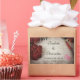 Guarde la fecha de pegatina del boda, que puede personalizar con el nombre de la novia y del novio y la fecha del boda. Fotografía con temática floral de otoño. Papel escrito en una línea de harina y un bolígrafo sentados encima con flores rojas bonitos y hojas verdes colocadas alrededor de los bordes.