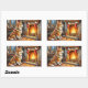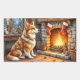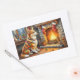 Pegatina Rectangular Azawakh Sitting by Fireplace with Christmas Lights