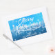 Pegatina Rectangular Azul Blanco Nieve Pacífico Bosque Feliz Navidad
