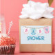 Pegatinas de ducha de bebé con ropa de bebé en la fila.