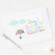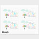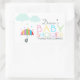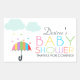 Pegatina Rectangular Baby Shower neutral de paraguas arcoiris