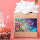 Colorido, elegante y vibrante diseño de arte fino con bailarinas románticas de carnaval :Figuras de baile caprichosas, hermosa mujer rubia con disfraces de gorjones brillantes está bailando con un joven Harlequin. Pintura acuarela de color rosa brillante, fucsia, verde, rojo, azul, amarillo , chispas doradas inspiradas en la Comedia del Arte (Commedia dell'arte) y el Carnaval de Venecia. También es un hermoso regalo para navidades, vacaciones, ocasiones especiales, fiestas de cumpleaños, baile de máscaras de Nochevieja, El día de San Valentín.