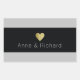 Banda negra con tus nombres y un falso corazón dorado del amor