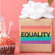 Todos somos iguales. PEGATINA del orgullo LGBTQ con la frase de personalizable "IGUALDAD" en letras negras con mayúsculas, sobre un fondo de arcoiris. Para solicitudes de personalizados, no dude en ponerse en contacto conmigo en zolicestore@hotmail.com (por favor, espere entre 1 y 2 días hábiles)