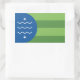 Pegatina con un diseño con la bandera de Bellingham, Washington. Una bandera verde y azul