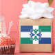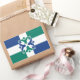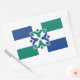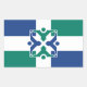 Pegatinas con un diseño con la bandera de Columbia, Missouri. Una bandera azul y verde con una cruz blanca