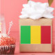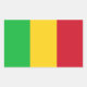La bandera de Mali (francés: Drapeau du Mali) es una tricolor con tres franjas verticales iguales. Desde la entrada (lugar donde el asta se cruza con la bandera) los colores son verde, dorado y rojo, los colores panafricanos. La bandera es idéntica a la bandera de Guinea, con la excepción de que los colores están en orden inverso. La bandera actual fue adoptada el 1 de marzo de 1961. La bandera original fue adoptada el 4 de abril de 1959, cuando Mali se unió a la Federación de Mali. Esta bandera era la misma, excepto que la franja dorada tenía una figura de palo humano, un kanaga, de negro, con los brazos levantados al cielo. La figura fue eliminada debido a la oposición de los fundamentalistas islámicos (ver aniconismo islámico, la creencia en contra de hacer fotos de la figura humana). (Mali es un 90% musulmán.) La bandera adoptada en 1959 para la Confederación era una imitación de la bandera de Ghana, pero siguiendo el estilo del Tricolore francés. Se cambió con un emblema negro conocido como kanaga, una figura humana estilizada. Los colores pretendían reflejar una unidad con otras naciones africanas. Después de que los dos países se dividieran en 1960, se conservó la bandera para su uso en Mali hasta el 1 de marzo de 1961, cuando se cayó el emblema de kanaga.