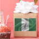 Pegatina con la bandera de Nigeria en un diseño de tela ondulada. Este diseño presenta los colores de la bandera nigeriana y el diseño con un hermoso efecto texturado de material ondulado. Este diseño de bandera es una gran manera de mostrar que estás orgulloso de ser de Nigeria.