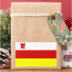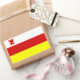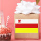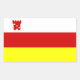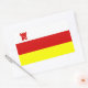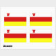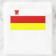 Pegatina con bandera de la ciudad de Santa Bárbara, California; bandera con tricolor vertical de blanco, rojo y amarillo, con ilustracion de fuerte rojo en la esquina superior izquierda