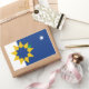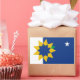 Pegatina con un diseño con la bandera de Topeka, Kansas. Una bandera azul y blanca con un símbolo de estrella amarilla
