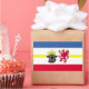 Pegatina con bandera variante de Mecklemburgo-Pomerania Occidental; diseño con cinco rayas horizontales de rojo, blanco, azul y amarillo, y con ilustraciones de cabeza de toro y águila roja