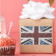 Bandera del Reino Unido con brillantes azules rojos purpurinas tonificados para un efecto rústico de estilo vintage. Sofisticado, deslumbrante, brillante, vívido, exuberante, rico y vibrante glamour diseño. La espumosa imitación de la bandera británica despierta a los purpurinas. ¡Usamos fotos de chispas y no de purpurinas reales!