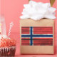 Este diseño rebuscado cuenta con una bandera noruega pintada en antiguas tablas de madera. Los tablones de madera tienen un aspecto meteorológico con pintura descascarillada visible por todas partes. Este patrón único de bandera noruega es una manera única de mostrar tu patriotismo