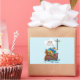 El Arca de Noé sobre un regalo de bautismo de un niño azul es tan precioso. Los animales miran desde el Arca de Noé, viendo la cruz a través de las nubes. Dulce por regalar a un niño mientras está bautizado.
