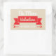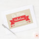 Este divertido diseño de pegatina El día de San Valentín incluye una pancarta roja y el texto 'Be Mine Valentine' '14 de febrero'. El fondo beige es opcional y se puede cambiar a cualquier color.