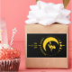Diseño de Mabón negro con lunas, bruja en una escoba con acentos de manzana y trigo.