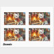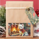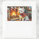 Pegatina Rectangular Bichon Frise Fireplace with Christmas Lights