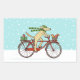 Pegatina Rectangular Bicicleta de perros con ardilla navideña