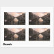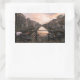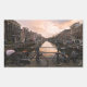Pegatina fotográfico rectangular con algunas bicicletas encerradas en el bar de un puente sobre el canal Prinsengracht, rodeado por las casas de los canales tradicionales al atardecer en el centro de Ámsterdam en los Países Bajos.