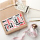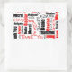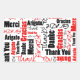 Dé las gracias con un pegatina rectangular diseñado con rojo y negro Gracias escrito en varios idiomas y una variedad de estilos de letra sobre blanco. Haga clic en Personalizar para seleccionar un color de fondo distinto del blanco en Editar y fondo.