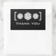 Estos Bodas de los juegos de dados D20 Gracias Pegatinas en blanco y negro son perfectos para la pareja de nerds que se enamoró de un interés compartido en jugar a roles y están planeando un boda con temas similares. Este diseño anticuado presenta un trío simple y minimalista de muerte veintidós. Fácil de personalizar, simplemente agregue los detalles de su boda en los campos de texto proporcionados. Haga clic en "Personalizar" para encontrar más opciones de personalización.