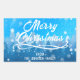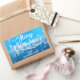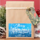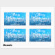 Pegatina Rectangular Blanco Azul Nieve Paz Bosque Feliz Navidad
