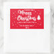 Pegatina Rectangular Blanco Rojo No Foto Familia Nombre Feliz Navidad