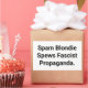 El Spam Blondie Habla Propaganda Fascista. Pegatina de comentarios sociales y arte de salpicadura por Jeff Hankamer en Artjunkhaus