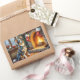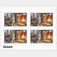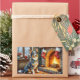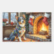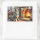 Pegatina Rectangular Blue Heeler Fireplace with Christmas Lights